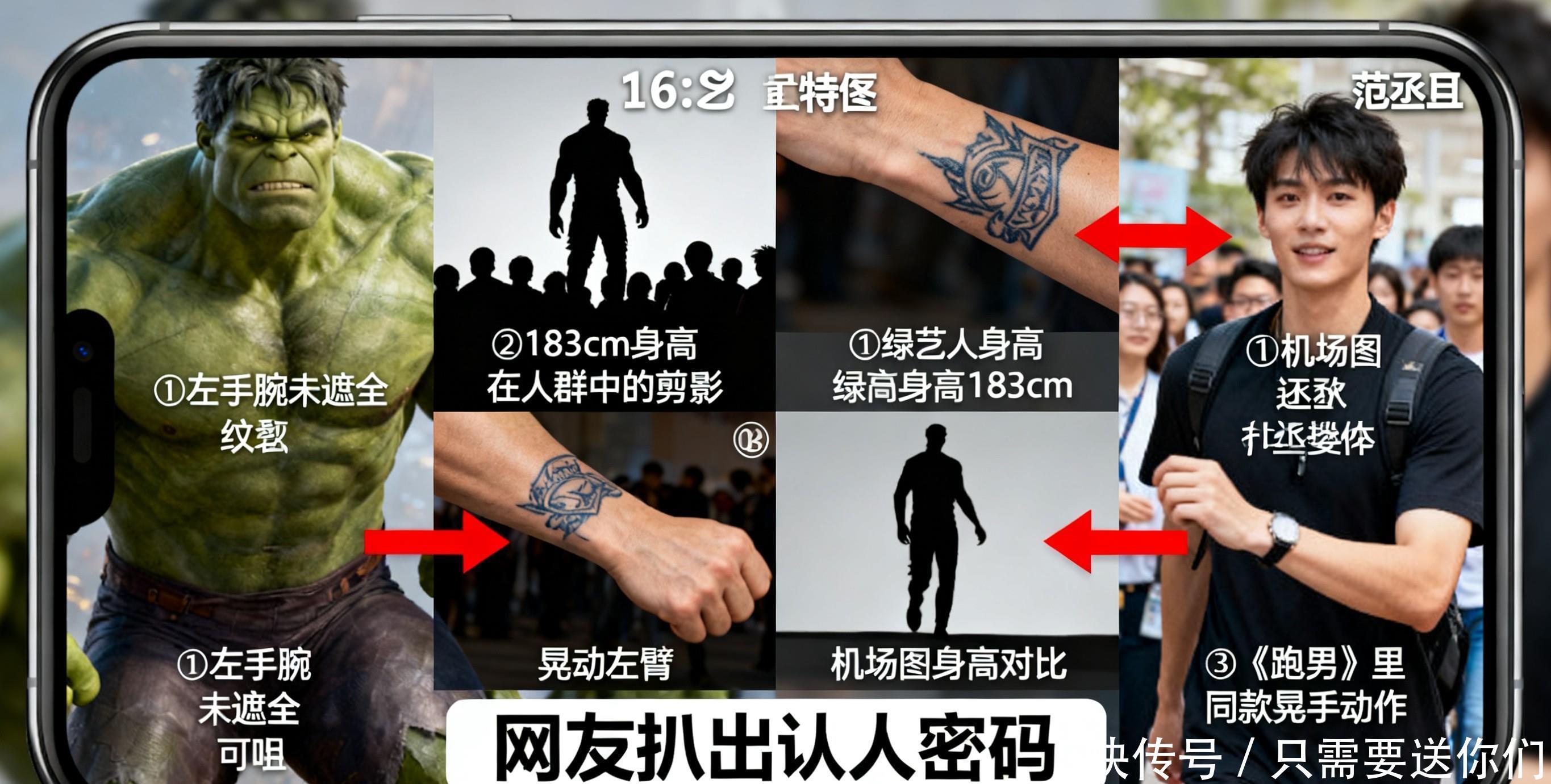 很快#范丞丞cos绿巨人被认出#就冲上热搜,可争议先来了:有网友较真“这明明是科学怪人弗兰肯斯坦,不是绿巨人”,吐槽媒体连角色都认错,还翻出造型对比图“打假”。更有意思的是“认人密码”大讨论:有人说靠左手腕没遮全的纹身,有人说凭183cm的高挑身形,还有人精准点出“是贾玲吐槽过的‘八千年长脖子’暴露了他”,翻出综艺片段对比,连晃动手臂的习惯姿势都一模一样。路人调侃:“他把脸涂绿了,却没把搞笑基因藏住,吃烤肠的松弛劲儿一看就是他。”