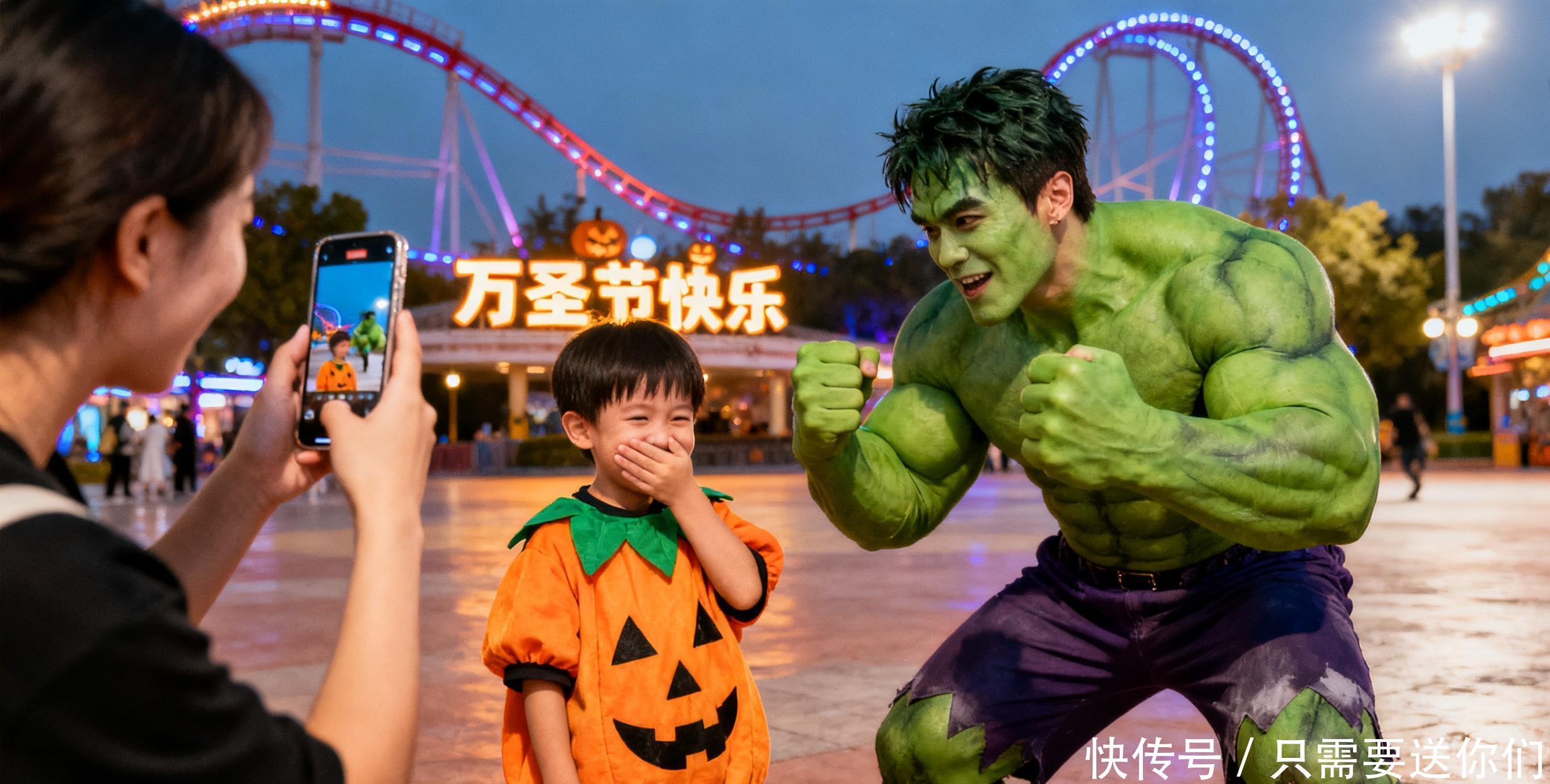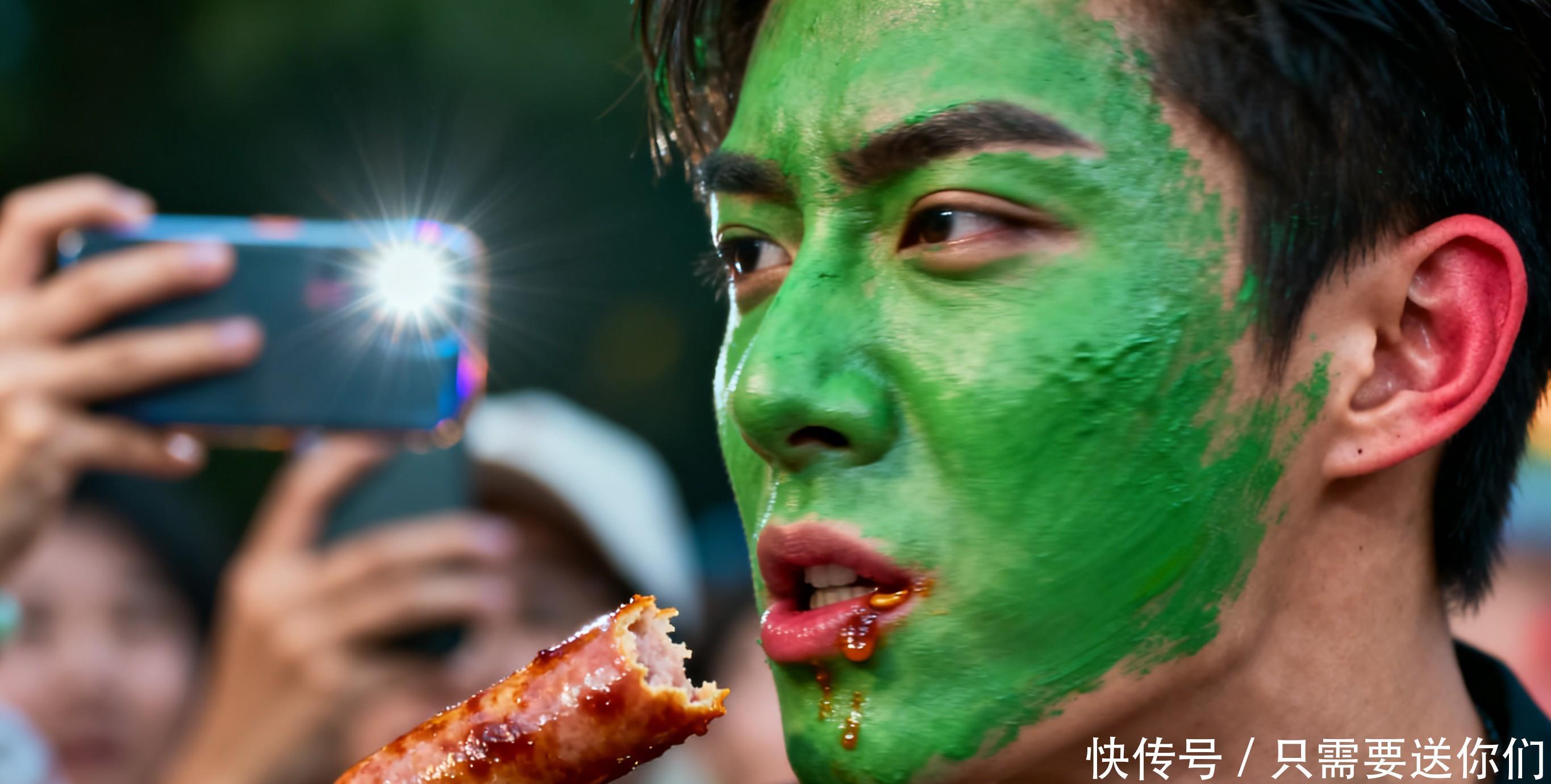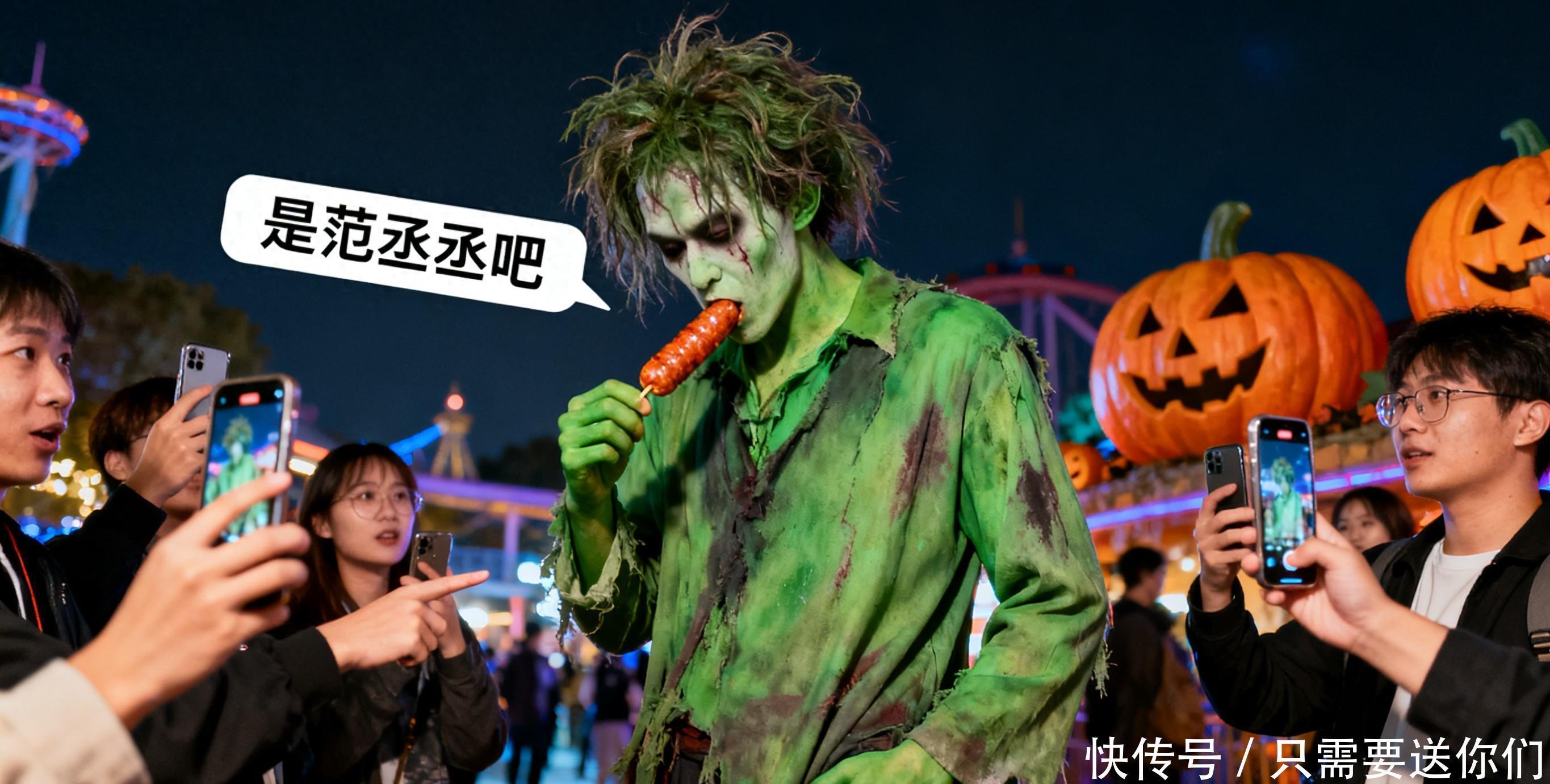 上海欢乐谷的“绿巨人”竟成顶流?这个涂满绿颜料、啃着烤肠的身影,怎么刚现身就被围堵,连路人都在喊“范丞丞”?